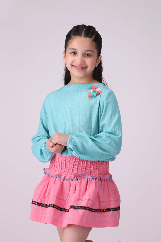 Introduce little fun to her wardrobe with our specially curated skirts for girls. Fabricated using cotton fabric- these skirts are very comfortable to wear. These skirts are designed in such a way so that they can be paired with any shirt, tee, or top. Check out our Smocked Waist Skirts. They feature smocked waist, ruffles, lace detailing, and contrast top stitches. Let mini-style meets maximum fun. Itβs all about giggle, twirl, and repeat.Β