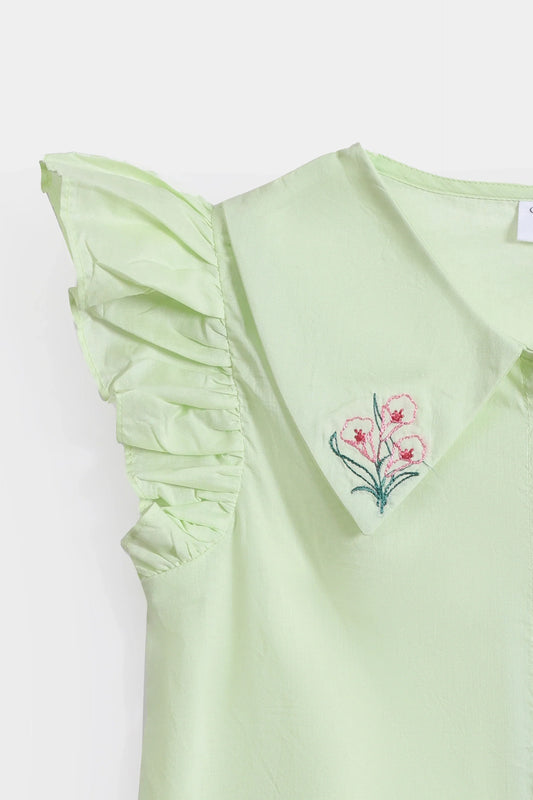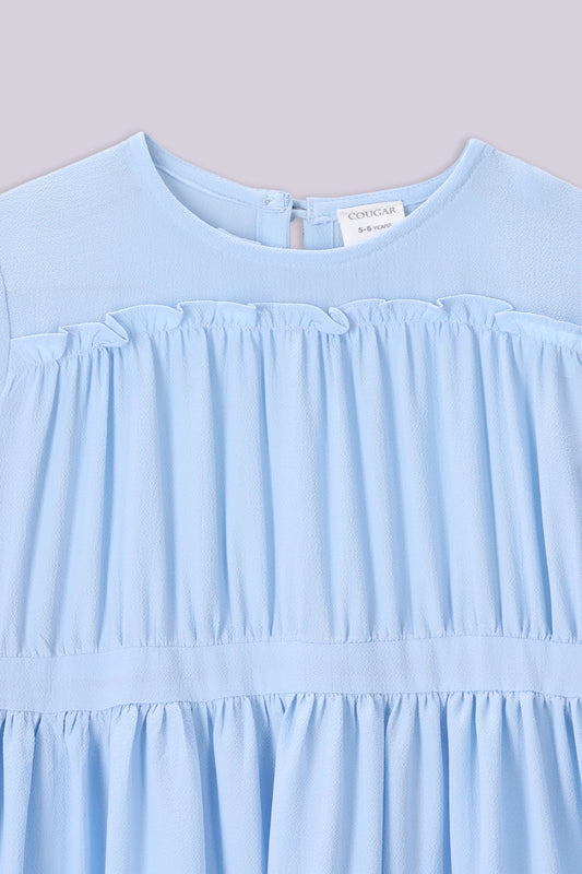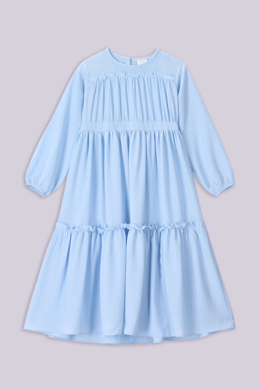 Soft ruffles and enchanting prints come together in this Printed Ruffle Top, creating an effortlessly stylish piece. Whether it’s a day at the park or a family outing, this top adds a playful charm while ensuring she stays comfortable and free spirited. Every little princess deserves a dress that makes her twirl with joy. Which is why Printed Button-Through Tier Dress brings elegance with its tiered flow, perfect for sunny days or special occasions. With each step, she’ll radiate the beauty and charm of a fairytale. For a refined and polished look, the Band Collar Frill Shirt is a must-have. The delicate frills add a sophisticated touch, making it ideal for dressy occasions while remaining breathable and lightweight. Pair it with trousers or skirts for a graceful, perfect outfit.