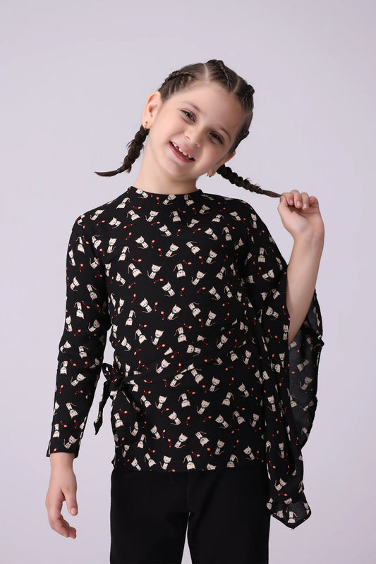Printed Top With Side Bows
