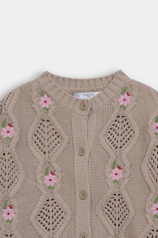 Floral Knit Open Work Cardigan