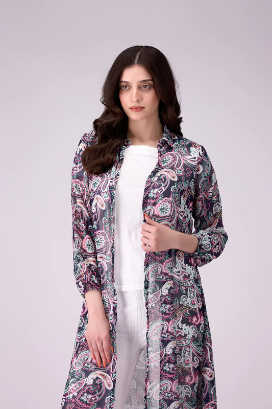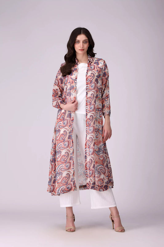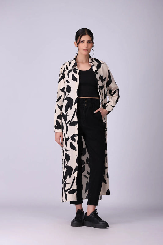For a trendy yet sophisticated look, the V-neck cropped top is a must-have. Its flattering silhouette makes it perfect for pairing with high waisted jeans or skirts, ideal for a fashion forward, modern appearance. If you're looking for a statement layering piece, the printed long shrug is the perfect addition to elevate any outfit. Whether worn over a basic tee and jeans or draped over a dress, it adds a touch of effortless elegance.