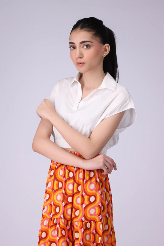 For those who prefer structured and polished styles, the resort collar cropped shirt is a timeless pick. Its tailored fit and sophisticated details make it a great choice for brunches, casual office days, or dinner outings. Meanwhile, the high-low printed top offers a graceful flow, making it ideal for both casual and semi-formal settings. Pair it with sleek trousers or denim to achieve an effortlessly put-together look. A true classic in any wardrobe, the printed silk top is the definition of luxury and grace. The silky, breathable fabric ensures all-day comfort while exuding elegance and charm. Whether styled with formal pants or tucked into a flowy skirt, this top enhances any outfit with its timeless appeal. If you love intricate details, the embroidered top is the perfect blend of traditional artistry and modern fashion. The delicate embroidery adds a touch of sophistication, making it a standout piece for special occasions or festive gatherings.