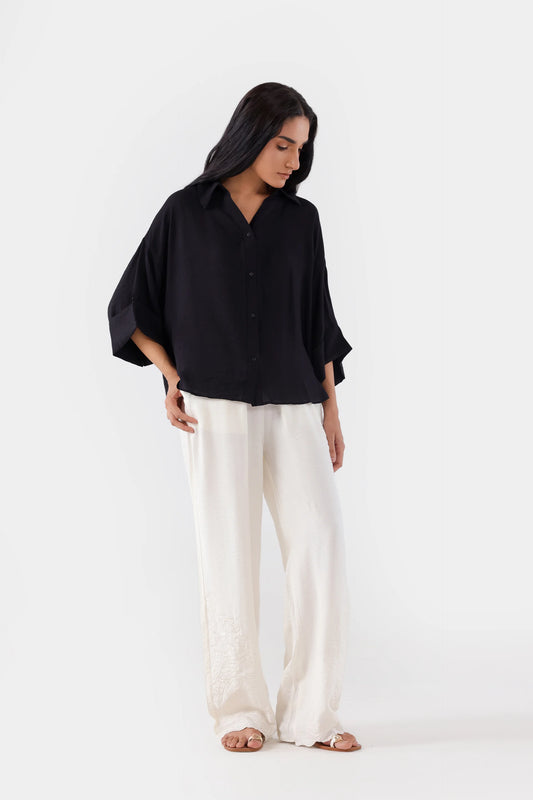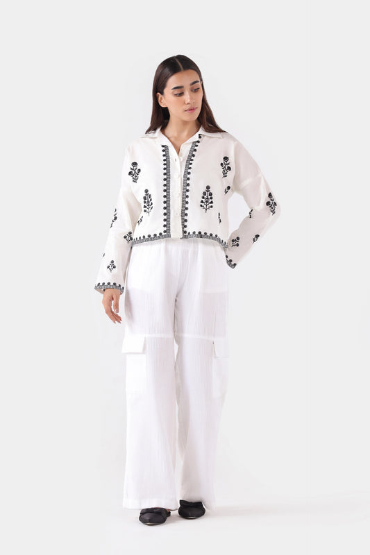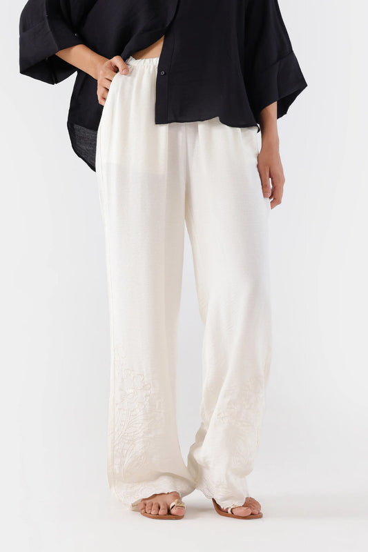 Textured Embroidered Trousers