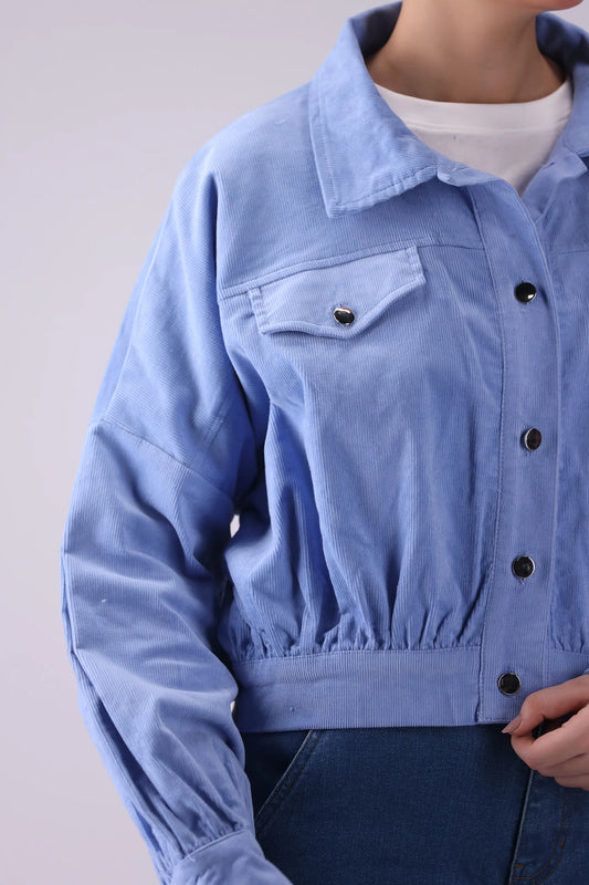 Corduroy Round Neck Button Down Jacket