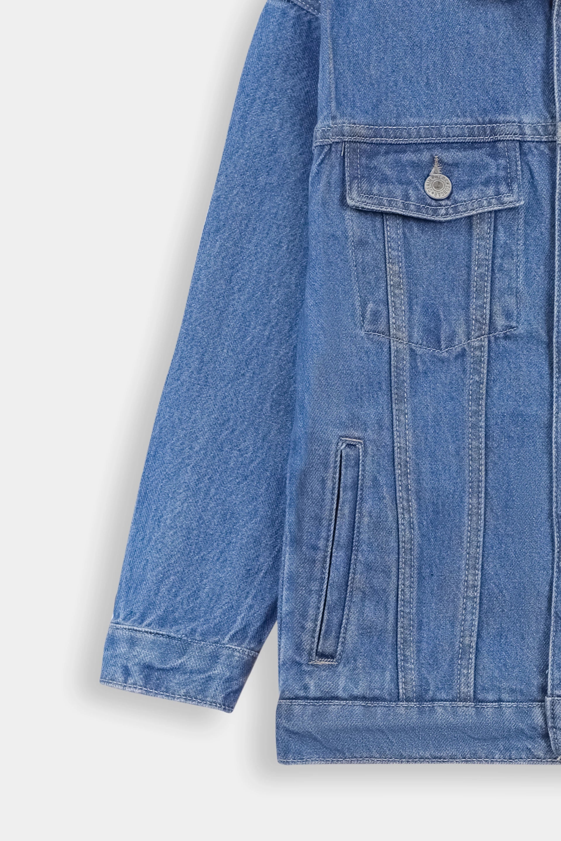 Design Details: Classic collar, front button closure, front flap pockets and side pockets, straight-cut hem