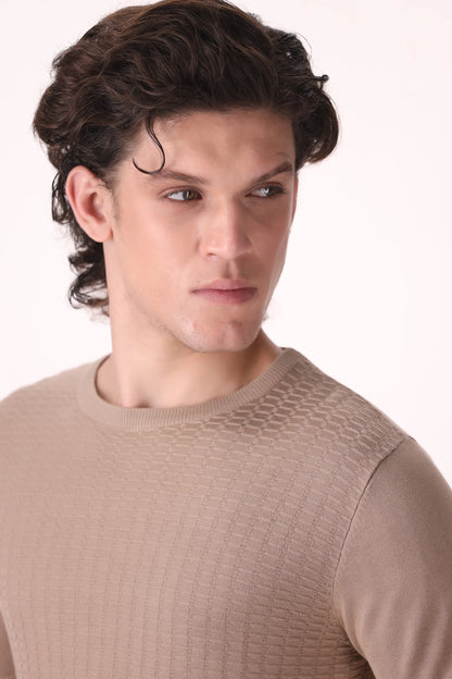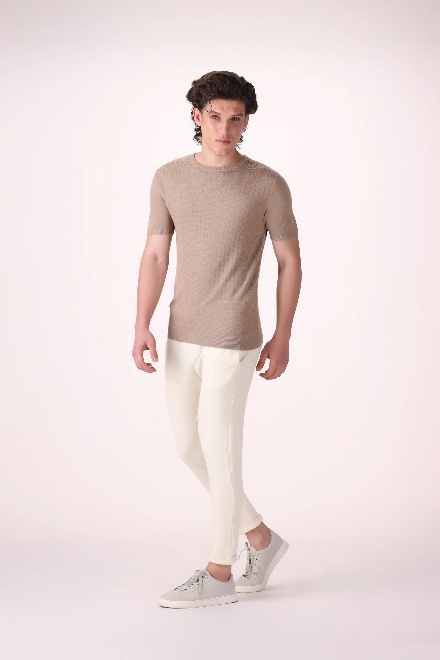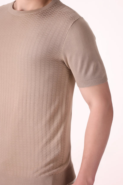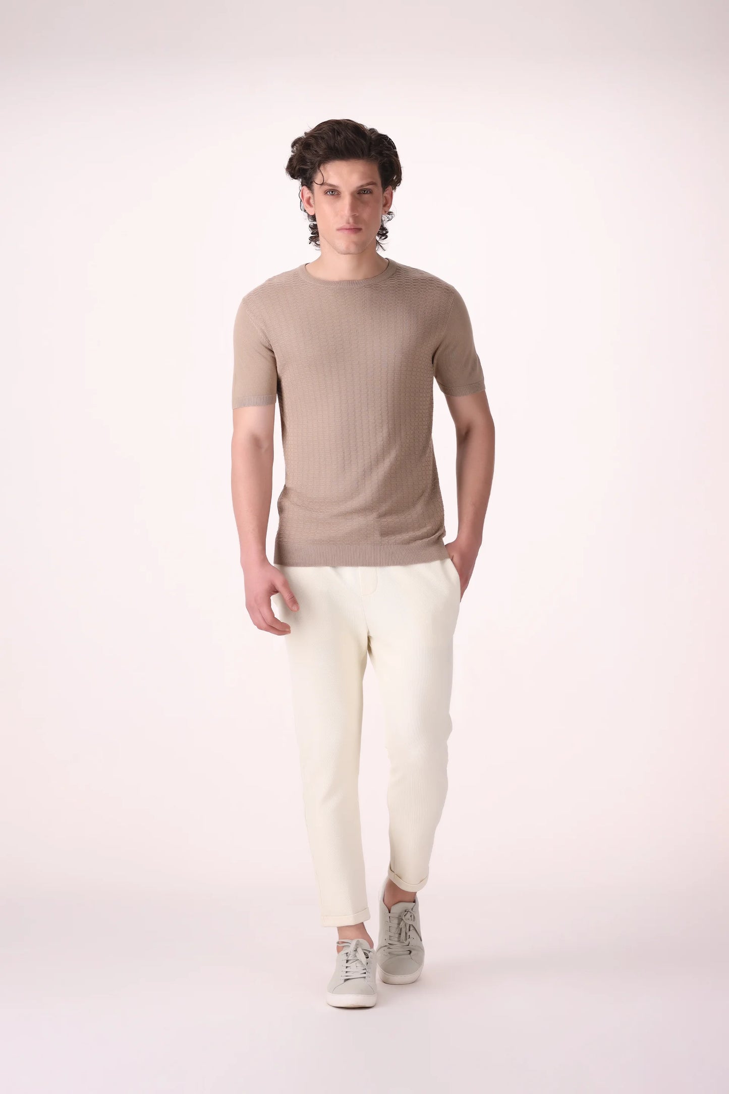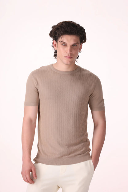 Design Details:��Crew neck, straight-cut hem, ribbed trims, texture knitted, short sleeves