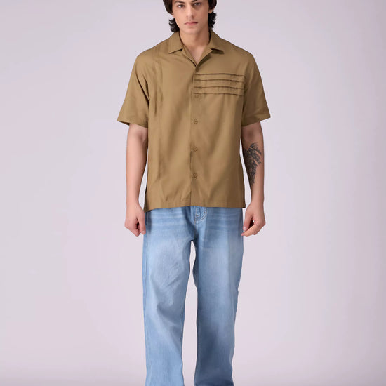 Design Details: Resort collar, half sleeves, straight-cut hem, pleated
