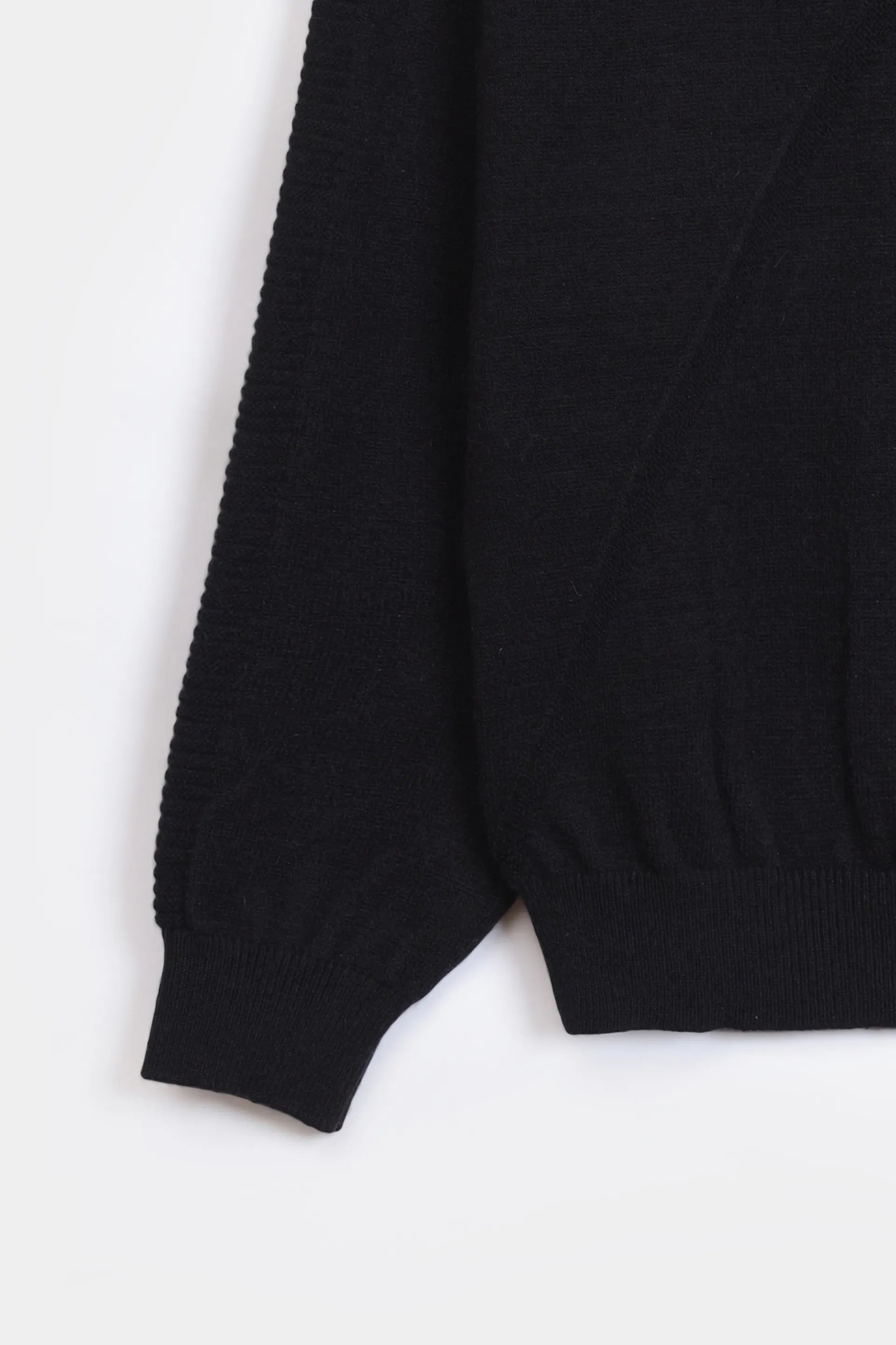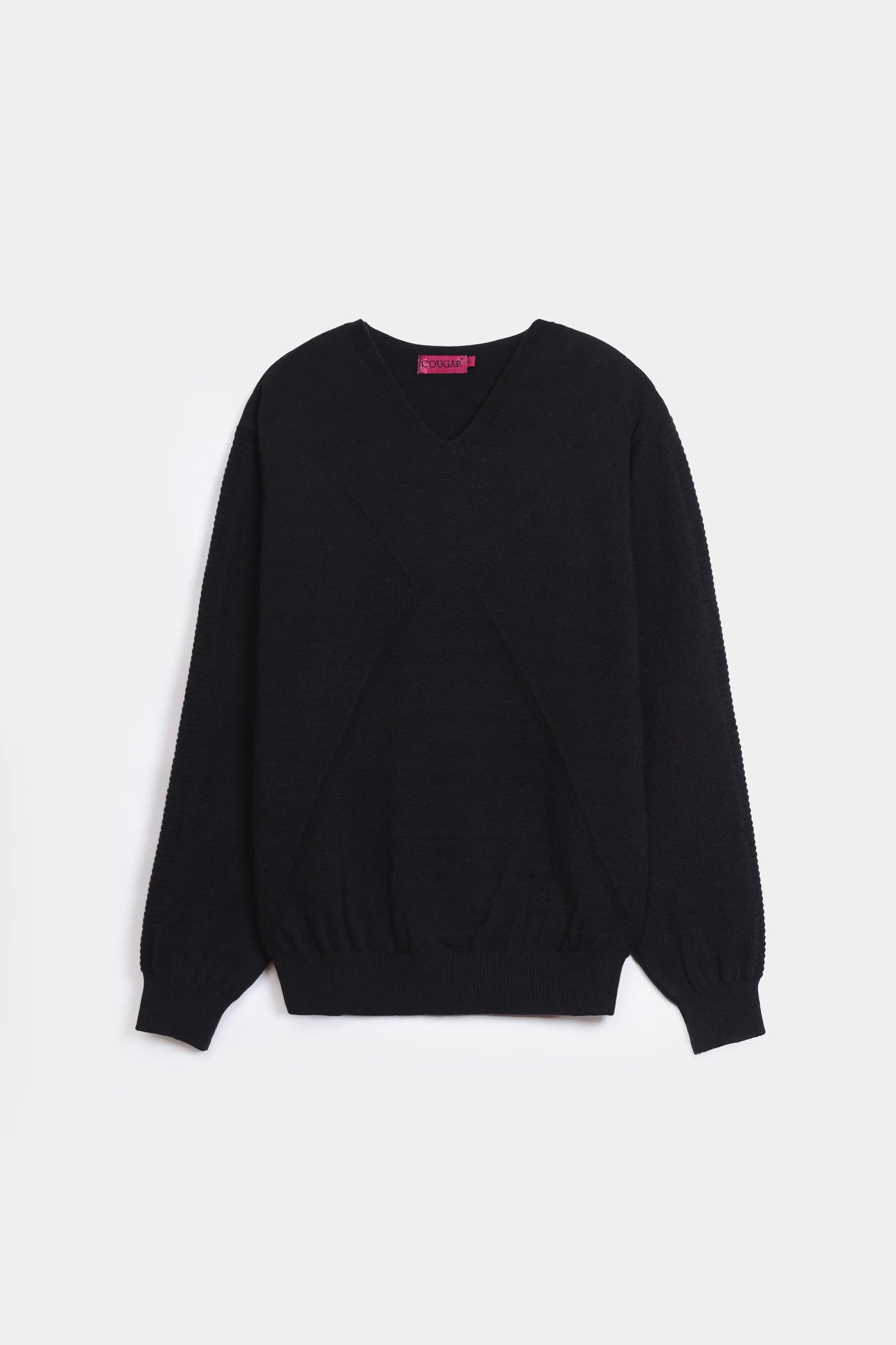 Design Details: Classic crew neck, long sleeves with ribbed cuffs, ribbed hemline, knit lines at front to create texture