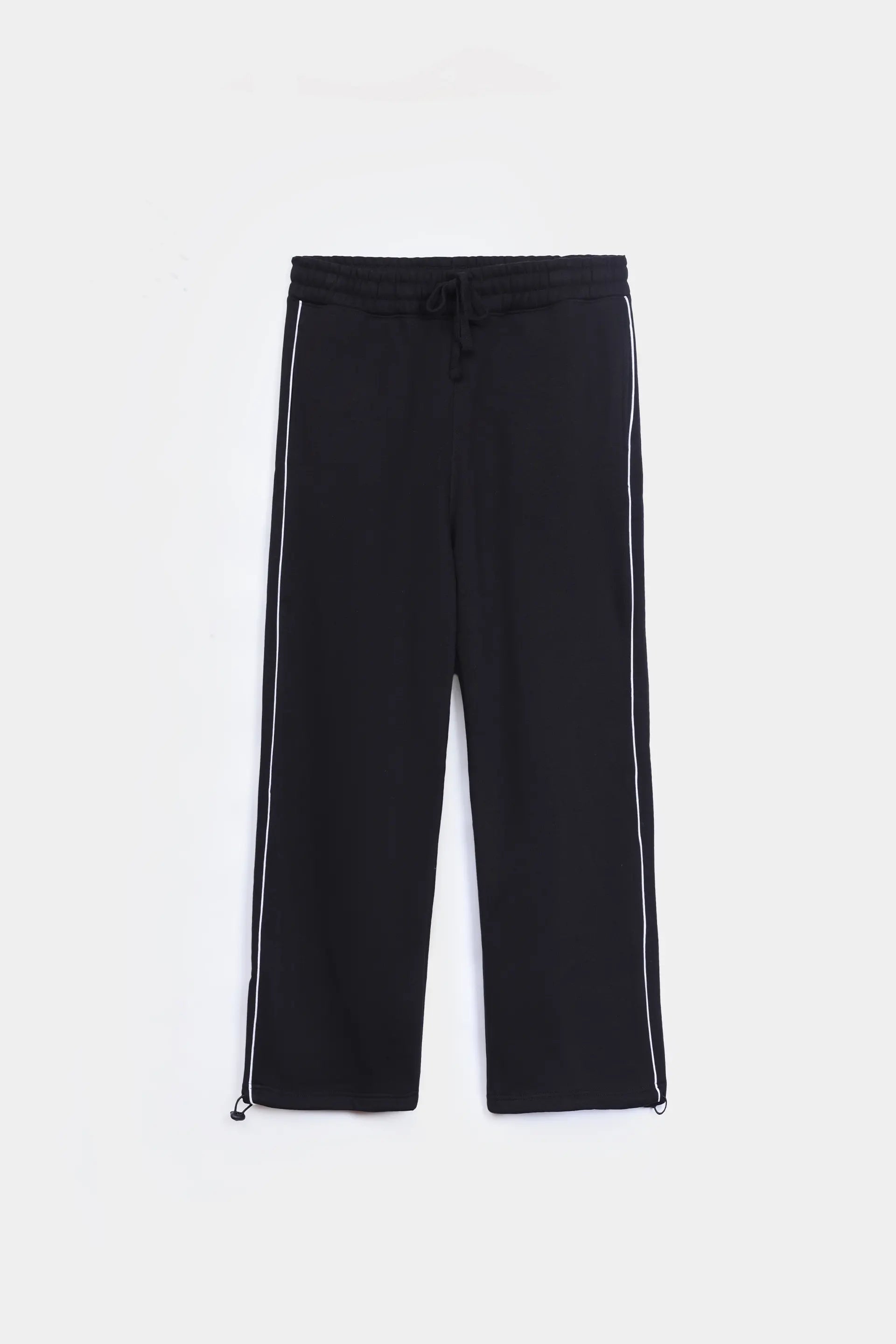 Design Details: Contrast piping, drawstring waist, pockets, toggle hem