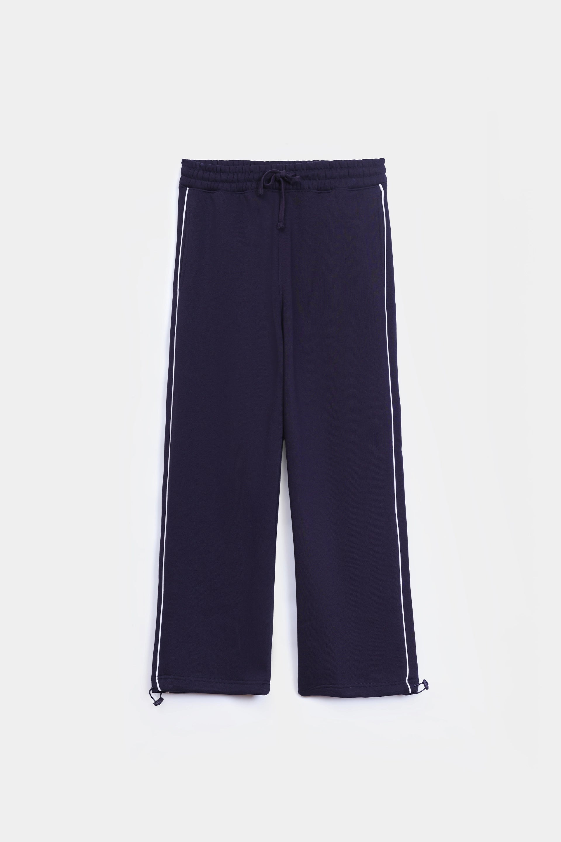 Design Details: Contrast piping, drawstring waist, pockets, toggle hem