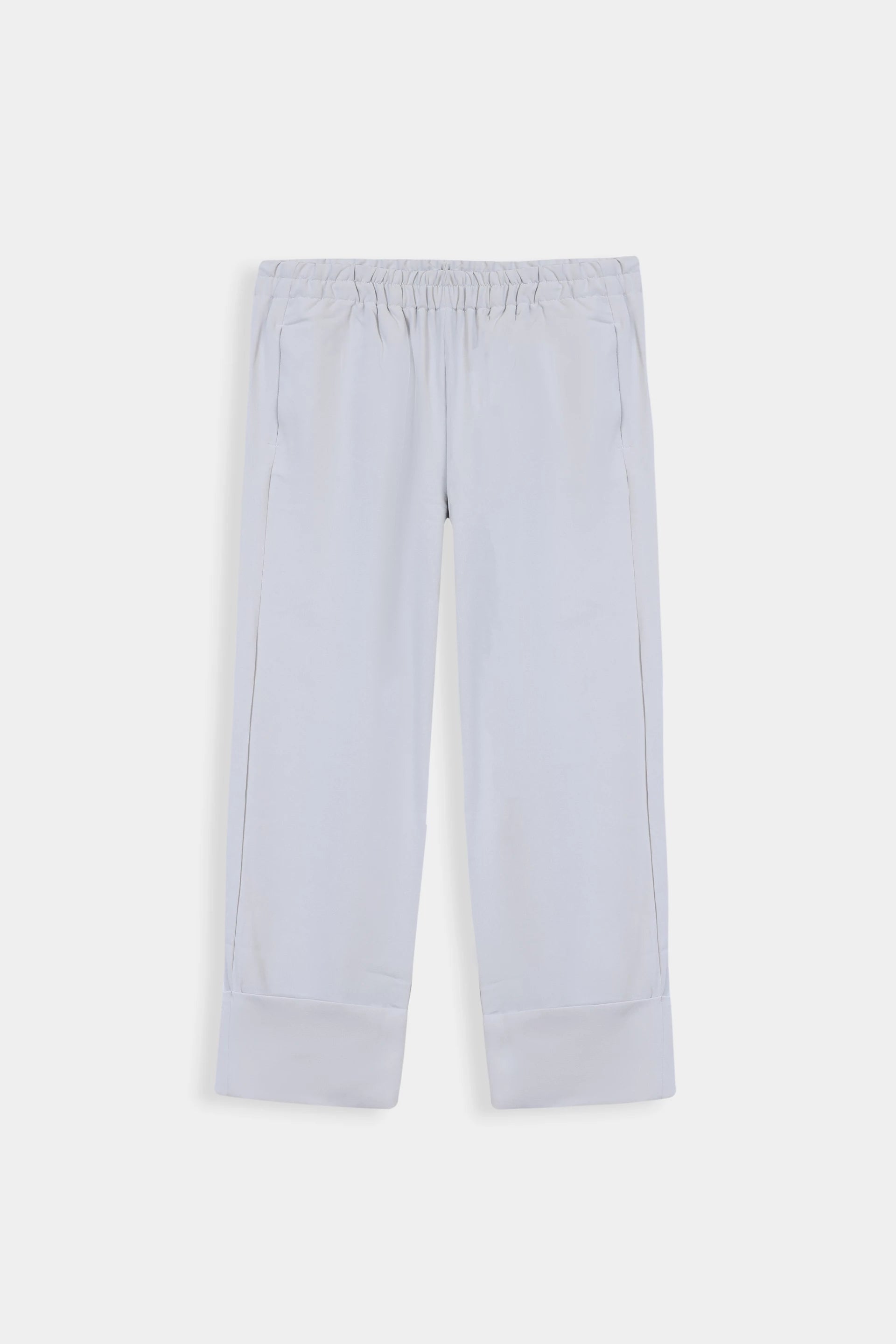 Design Details: Elastic waist, cuffed hems, straight-cut